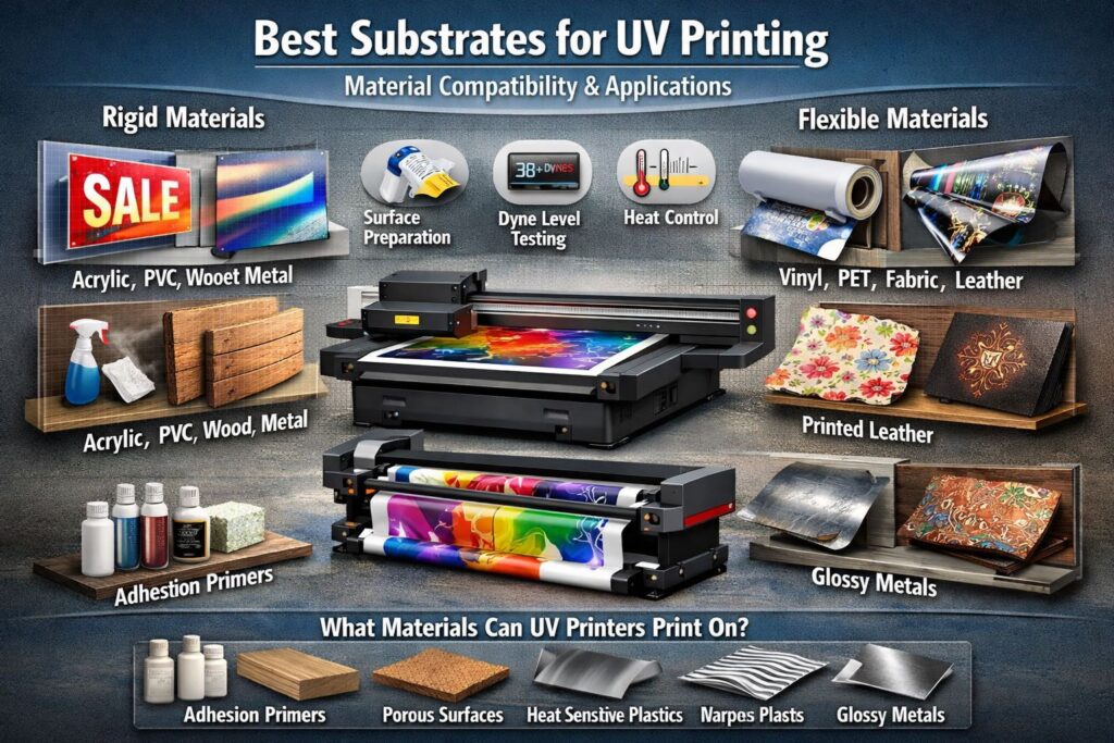 Aluminum, ACM panels, and treated PVC last longest outdoors. These materials resist sun, rain, and temperature changes. We recommend them for signs and displays. With proper substrate choice, outdoor UV prints last five to seven years.