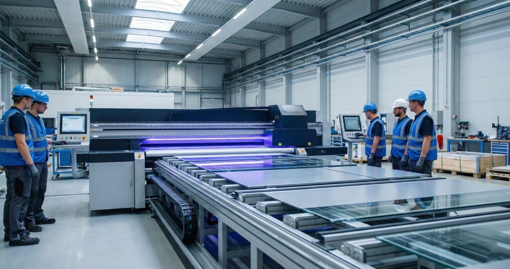 An industrial UV printer stands apart through continuous operation and output stability, not price tags. We’ve worked with manufacturing production lines where duty cycle determines everything. Rigid substrates move through 24/7 without stopping. UV printing on metal surfaces, glass, or wood. Up time matters more than footprint size.
